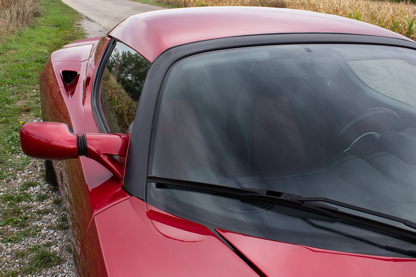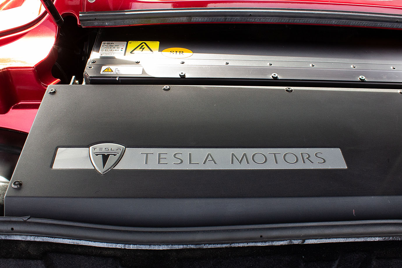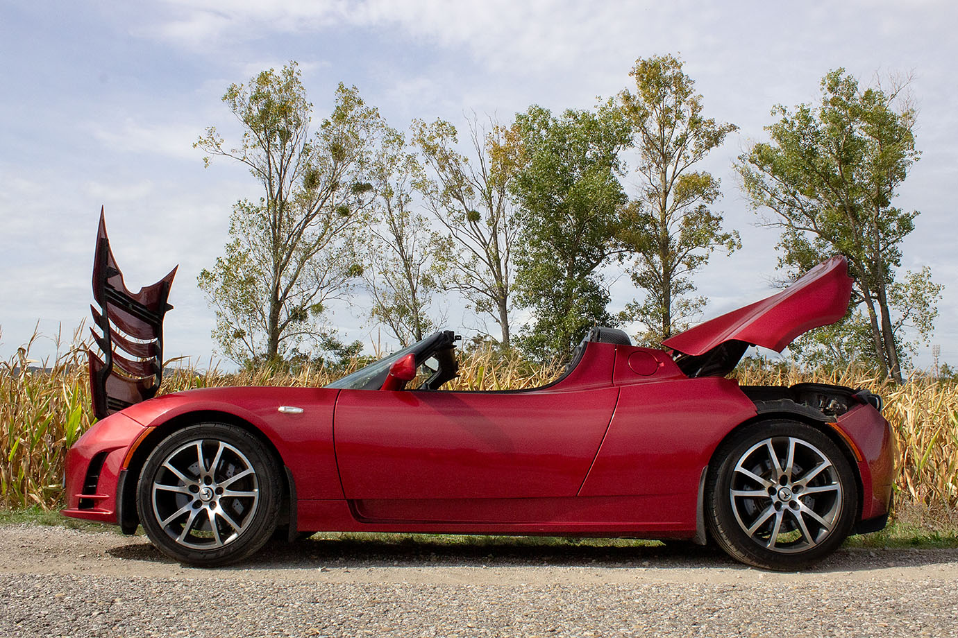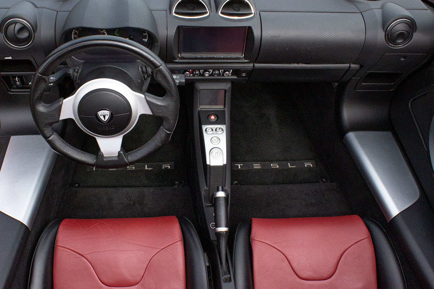 Dieser Tesla Roadster ist in der gleichen Ausführung wie der Privat-Roadster von Elon Musk, der seit zwei Jahren im Weltraum um die Sonne kreist, mit kirschroter Lackierung und schwarzroter Innenausstattung.