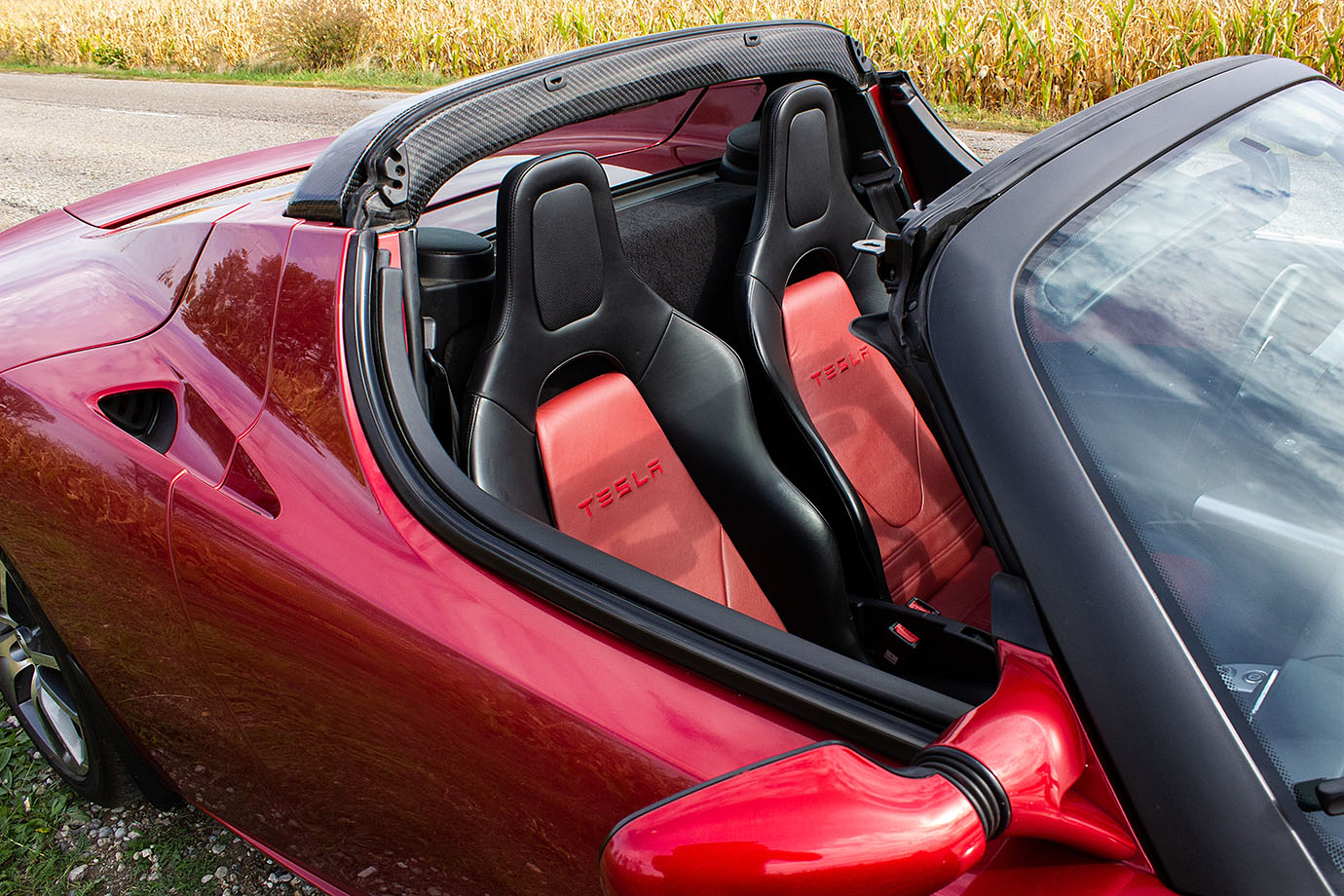 Der Roadster ist ein rein elektrischer, zweisitziger Sportwagen. Er Beschleunigt von 0 auf 100 in 3,7 Sekunden und ist als Cabrio, mit Stoffdach oder mit Hardtop zu fahren.
